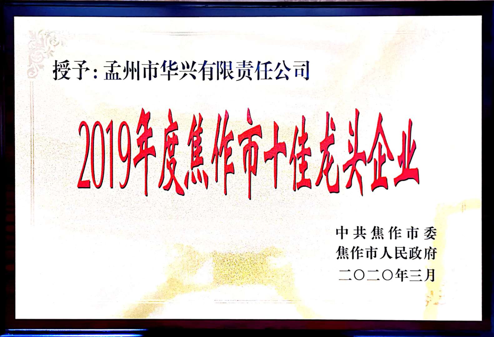 2019年度焦作市十佳龍頭企業(yè)